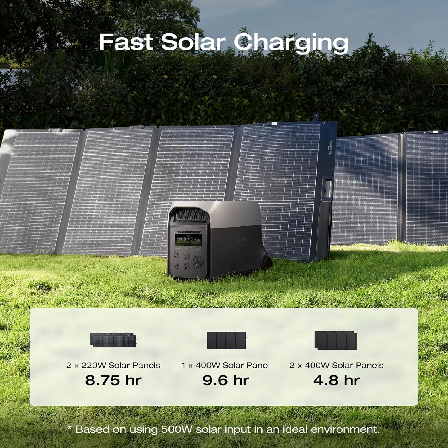 EF EcoFlow DELTA 3 Ultra Portable Power Station, 3072Wh LiFePO4 Battery, 3600W (Surge 7200W) Output Home Power, Solar Generator for Home Use, Camping Accessories, Emergencies & RV Backup(DELTA 3 Ultra+400W Solar Panel)