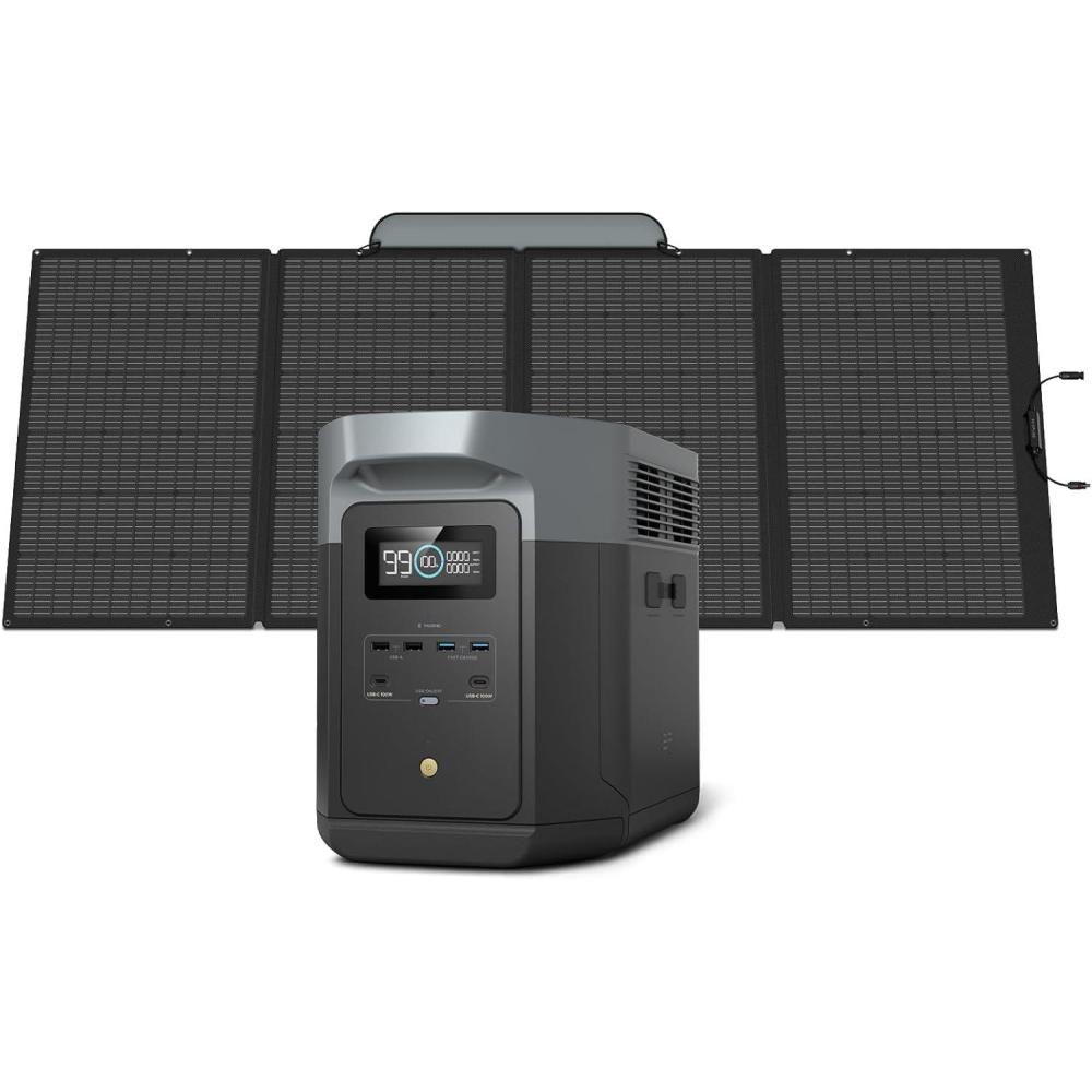EF ECOFLOW Portable Power Station DELTA 3 Max, 2048Wh LiFePO4 Battery, Solar Generator (Solar Panel Optional), 3400W X-Boost Output, Ultra-Fast 0-80% Charging in 1.13 Hr, Home Backup & RV Camping(DELTA 2 Max+220W Solar Panel)